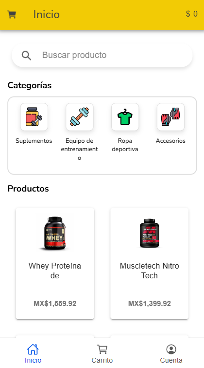 La aplicación fue desarrollada para la organización SPORT GYM CENTER, derechos reservados, tienda eccomerse de productos asociados a la venta en tienda física